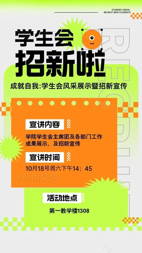 2025年10月18日下午,第五期活动以“成就自我:学生会风采展示暨招新宣传”为主题,在南校园第一教学楼1308开展。本次活动由学院学生会主席团成员及各部门负责人主讲。