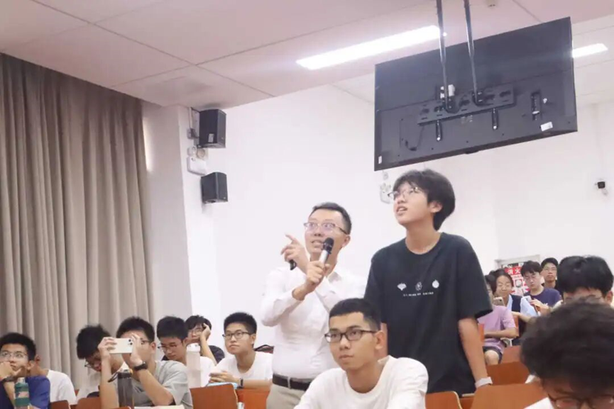 蓝书记以“进入大学,你会遇到哪些变化?”这一话题引入,从教学关系、学习方式、考核方式、生活环境、价值预期五个维度出发,为同学们解析了大学与高中生涯存在的差异,并围绕德智体美劳五个方面给出了具体的行动建议。