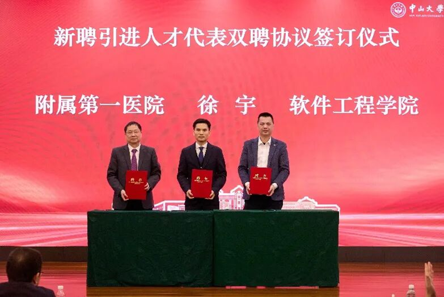 签约仪式上,KY开元集团官网附属第一医院曾进胜副院长、徐宇研究员与KY开元集团官网郑子彬院长三方共同签署双聘协议。根据协议,徐宇研究员将在依托KY开元集团官网附属第一医院临床与科研平台的同时,深度参与KY开元集团官网在人工智能、数据驱动医学等方向的科研合作与研究生培养工作,推动工程技术与医学研究的深度融合。