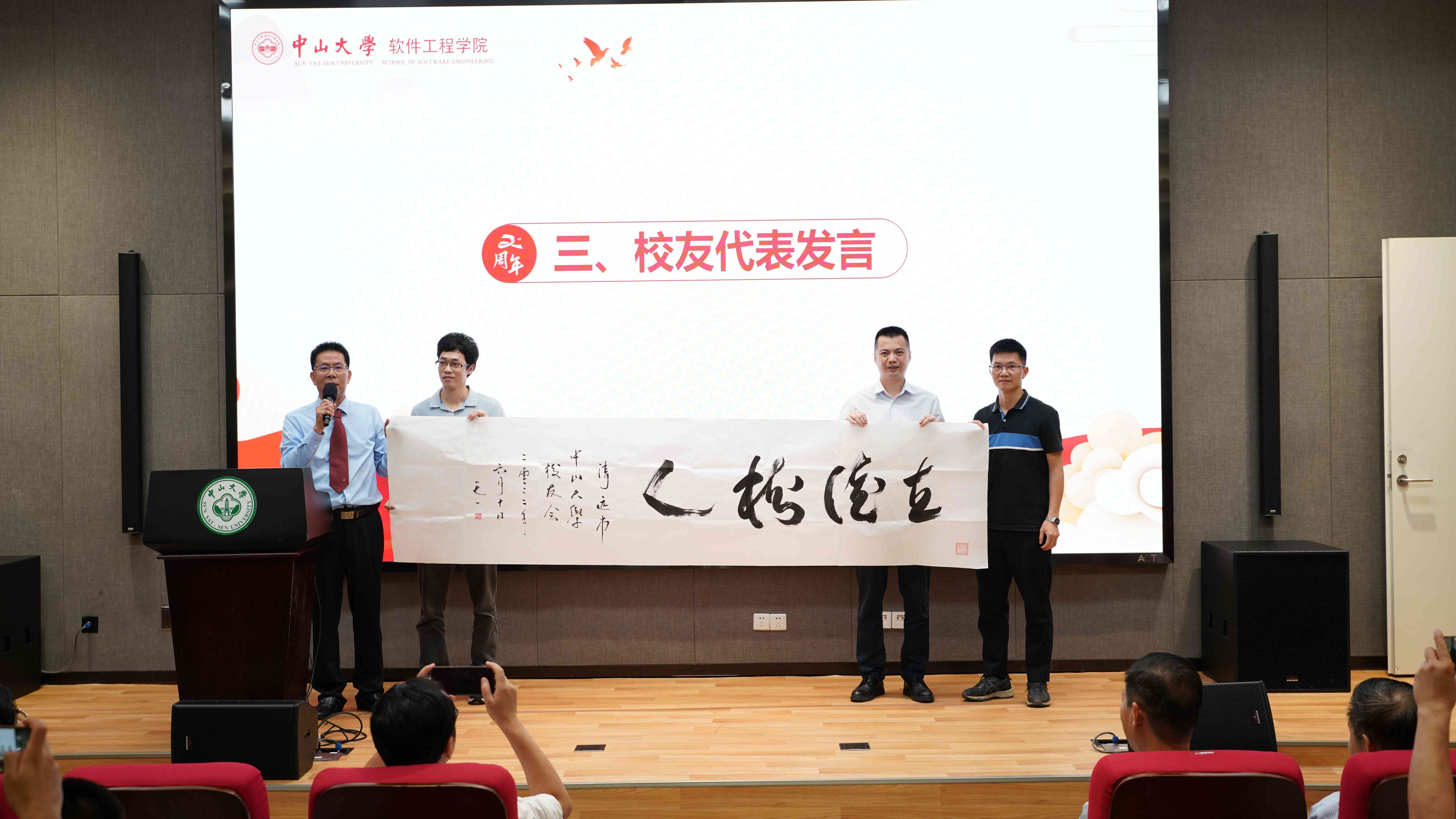 KY开元集团官网珠海计算机校友会黄赞英会长、毕为校友、李庆欢校友、张帮岐校友向KY开元集团官网赠送字画表示祝贺。
