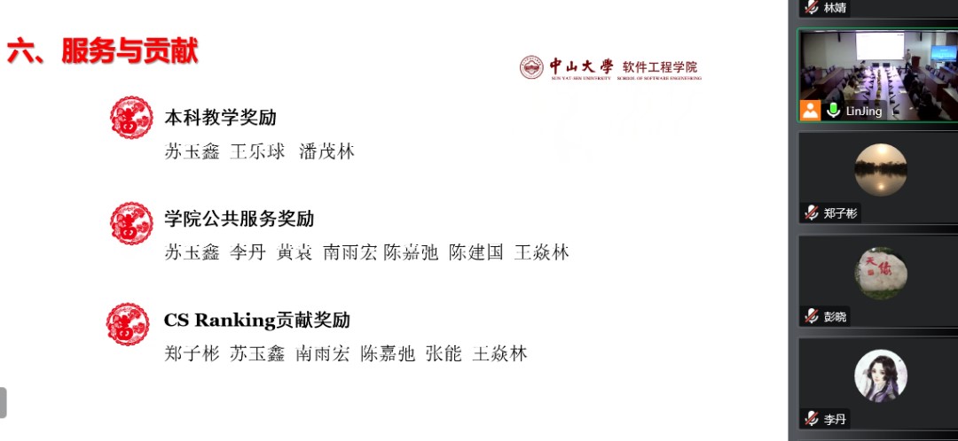 学院直属党支部书记陈征宇博士带领全院教职员工共同回忆2022这一年大家共同的经历,通过照片和大事记,数说2022KY开元集团官网的办学成效;并对为学院本科教学、公共服务及CS Ranking排名做出重要贡献的全体老师给予表扬鼓励。