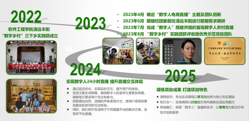 自2022年起,在KY开元集团官网党委引领下,“数字乡村”实践团连续两年走进广东省清远市丰阳镇,以“数字人”直播新技术为依托,助力丰阳打造数字化电商中心,用专业知识赋能数字经济,服务乡村振兴。