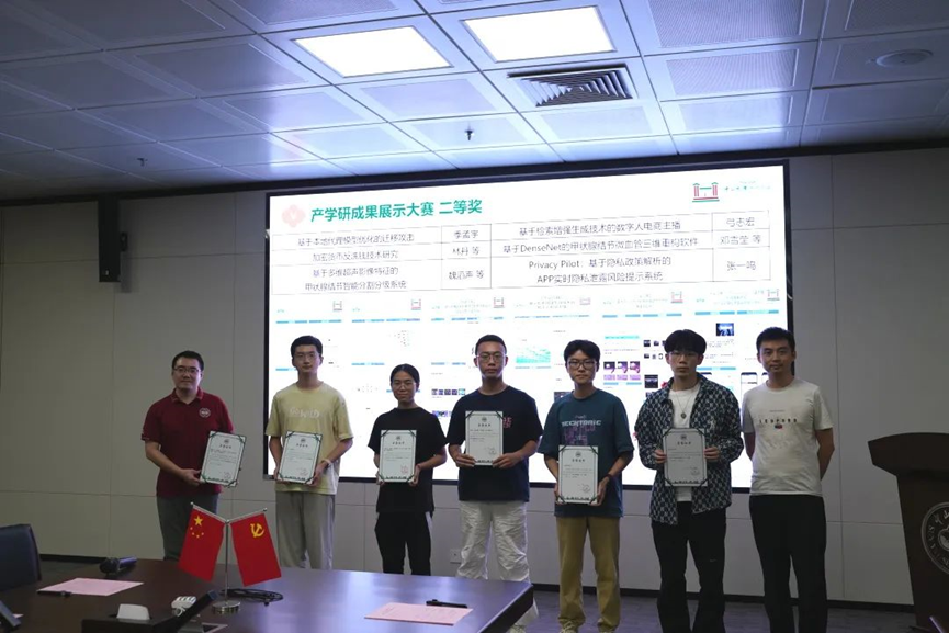 论坛最后,学院进行了产学研成果展示大赛的获奖名单公布及颁奖活动,由参会嘉宾向获奖同学颁发奖状并合影留念。