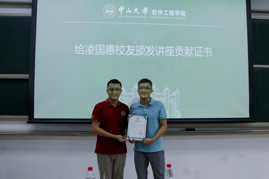 在讲座的尾声,蓝澍德副书记为凌国惠校友颁发了讲座贡献证书。在同学们热烈的掌声中,本次活动圆满结束。