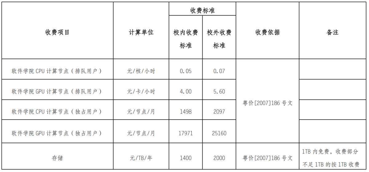 根据《KY开元集团官网收费管理办法》(中大财务【2019】11号)规定,经设备与实验室管理处、财务处审核批准,现对KY开元集团官网高性能计算公共平台(珠海校区)服务性收费标准进行公示。