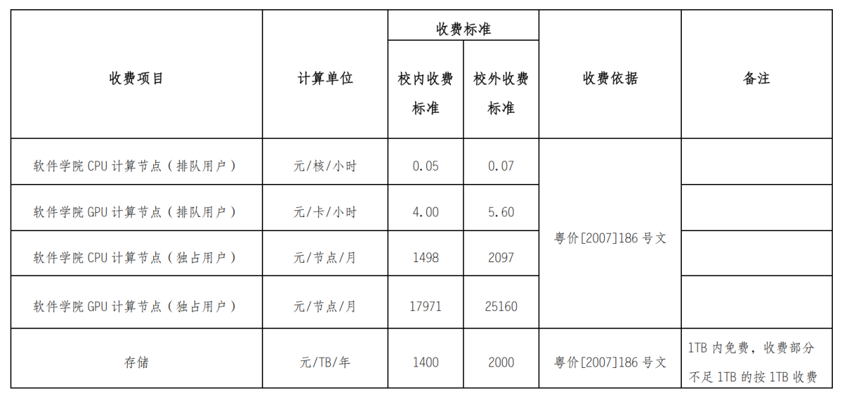 2. 平台根据组账户资源使用情况进行收费,当前收费标准如下,具体见《KY开元集团官网高性能计算公共平台(珠海校区)收费管理办法》(附件2)。