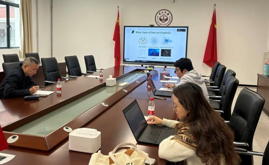 (1)娄坚老师试讲《图机器学习》课程。他解释了图数据结构在不同领域的广泛应用,介绍了图的基础知识、图机器学习在不同层级上的任务以及在生物医药、物理学等领域的应用案例。考核组专家肯定了娄老师深入浅出的讲解方式,同时指出课程内容相对抽象、理论性较强,建议他多列举与现实关联紧密的案例来吸引学生兴趣,加深学生的理解。