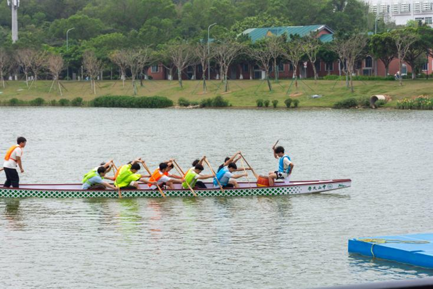 校区若海湖上,软工龙舟队全情投入