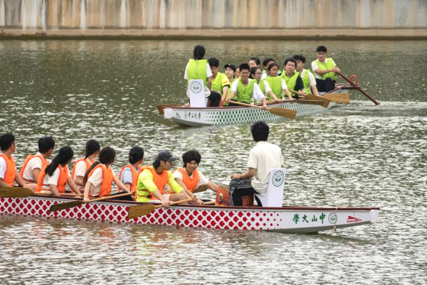 一同体验划龙舟的乐趣