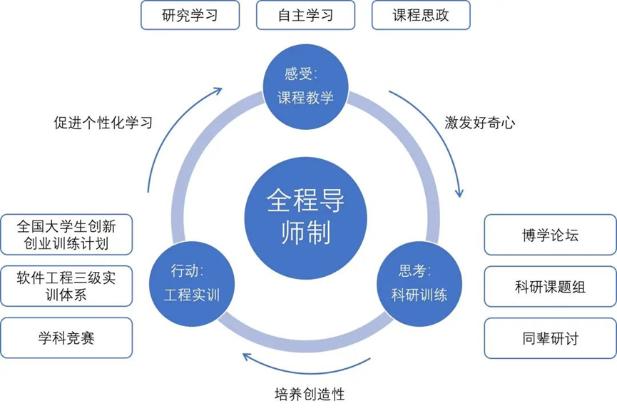 学院始终围绕“以学生成长为中心”的培养理念,通过优化课程设置、改革教学方法、第二课堂支撑、科教融汇、产学融合等方式,培养学生形成良好的学习力、思考力和行动力,以期成为能够引领未来的创造性人才。