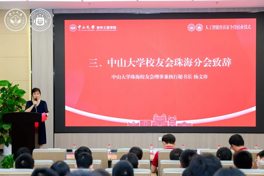 杨文珍秘书长也向顺利完成学业的营员们表示了祝贺,并向KY开元集团官网尽心尽力的专业导师、后勤团队及支持本次夏令营的各界同仁致以最崇高的敬意和最衷心的感谢。她认为在本次夏令营中,营员们努力探索前沿科技,不断完成自我超越,传承了敢为人先、追求卓越的中大精神。最后,她提出三点期许,希望同学们永葆好奇之心、坚守科技伦理、勇担时代之责,并祝愿大家带着中大的烙印,以代码为笔、以算力为帆,在未来的数字浪潮中破浪前行。