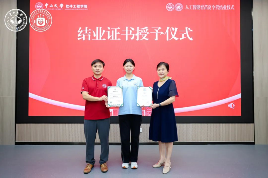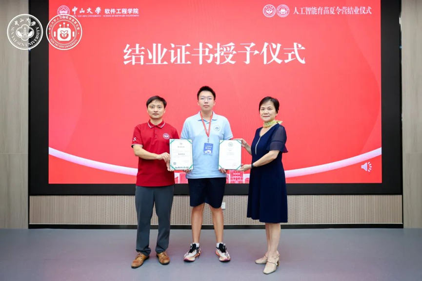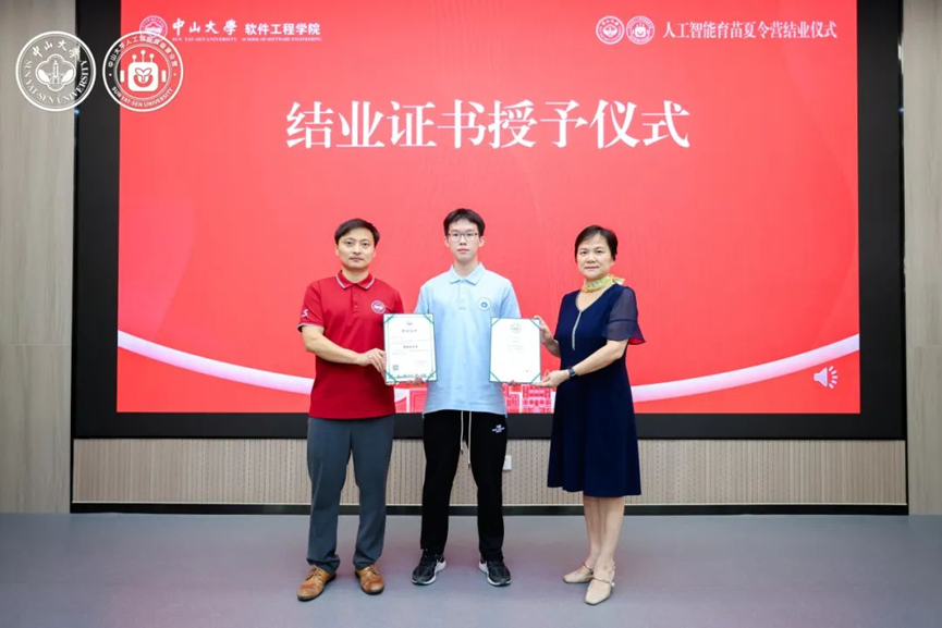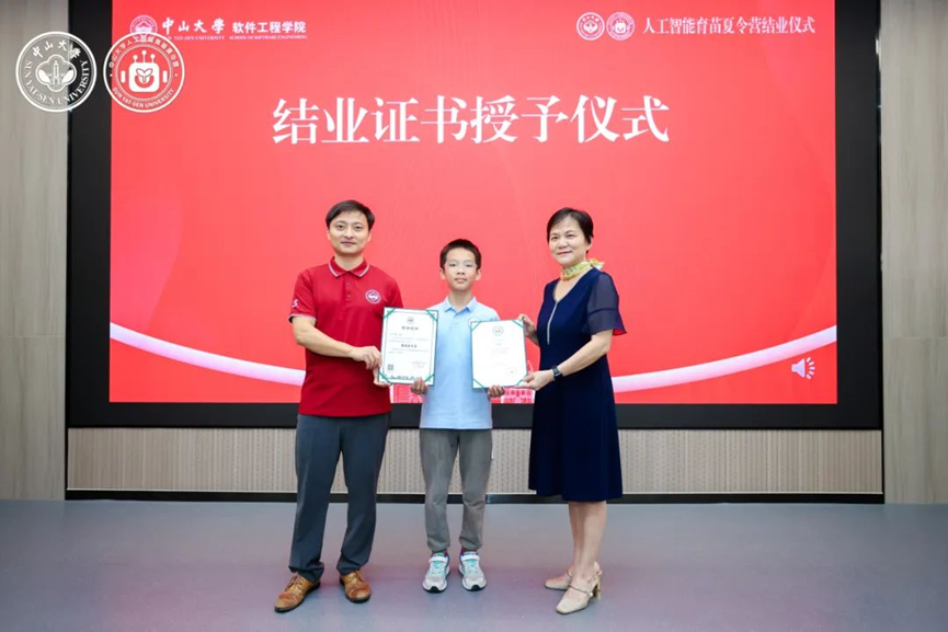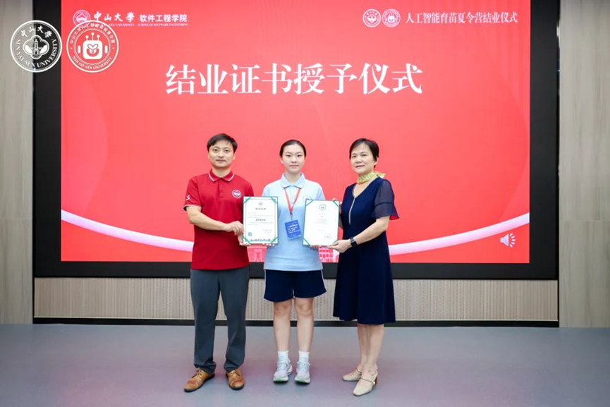 黄华威教授与杨文珍秘书长共同为全体营员颁发结业证书,并对优秀项目成员进行表彰。这一份份独一无二的专属证书,既是对同学们这六天努力学习、积极探索、圆满完成学习任务的充分肯定,也是助力大家开启未来AI探索之路的小小里程碑。