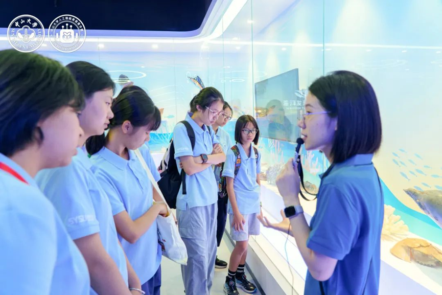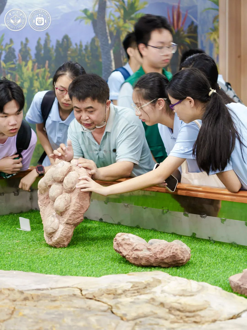 在博物馆中,同学们穿梭于矿物、岩石与动植物化石等展区间,时而驻足细致观察,时而探讨化石的演化历程;在海洋基地里,各类用于海洋探测与研究的尖端装备,以及珍贵的海洋生物资源标本,让同学们应接不暇。