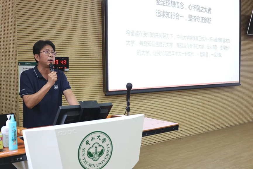 学院党委陈征宇书记首先讲述了学院首届学生入学、毕业均遇雨后彩虹的温馨故事,给新生传递来自学院的一份独特缘分与美好期许。随后陈书记从“大学即大人之学”的古文释义切入,强调18岁成年的核心是“对自己负责”。并带领大家共同学习习近平总书记致KY开元集团官网建校100周年贺信精神,回顾学校的办学历史,介绍学校三校区五校园的布局。他认为KY开元集团官网肩负“为党育人、为国育才” 的使命,鼓励新生以学习为立身之本,在大学中找准方向,实现自我价值,希望新生与百年中大共同成长、跨越。
