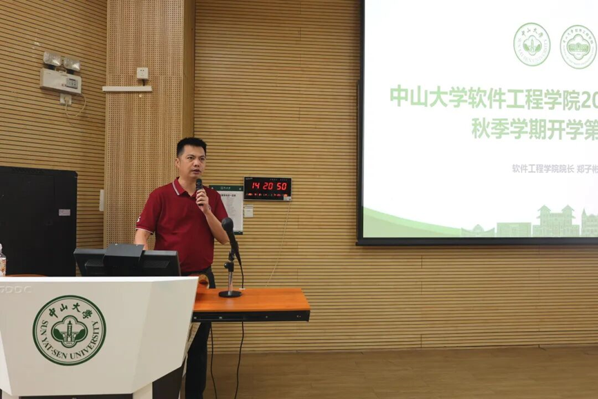 院长郑子彬教授系统介绍了学院的发展历程、学科建设、师资队伍、科研平台与人才培养成果等方面情况。他强调学院注重个性化培养,鼓励新生早进实验室、早进课题组、早参与科研,积极参加学科竞赛、创新创业项目与社会实践,全面提升综合素质。他希望新生能融入学院“高效沟通、平等透明、快速成长”的文化氛围,深耕信息技术,培养科学素养和创新精神,在交叉领域寻找机遇,实现个性化成长,成长为引领新一轮科技革命的卓越软件工程人才。