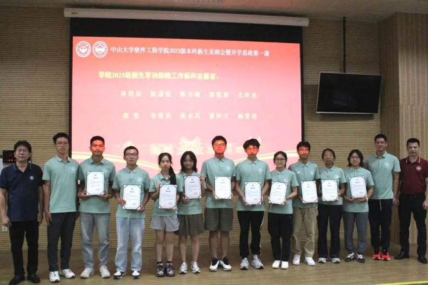 为弘扬志愿服务精神与树立模范典型,学院广泛征集2025级本科新生的建议,民主推选出在军训期间为大家默默服务的志愿者代表。学院党委陈征宇书记与院长郑子彬教授共同为十名军训保障工作标杆志愿者颁发荣誉证书,鼓励大家继续发扬传递“奉献、友爱、互助、进步”的精神,多为班级、学院和学校做实事。