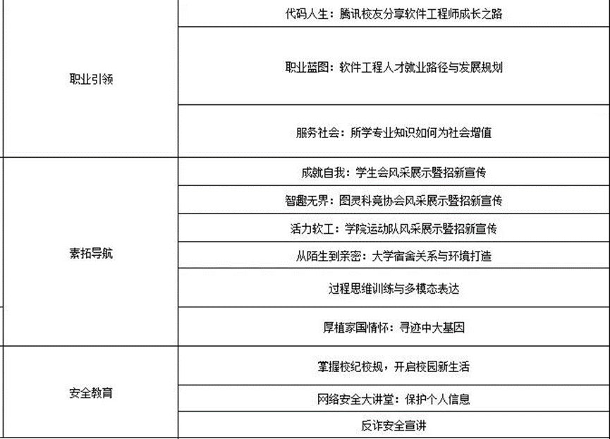 为帮助2025级新生认识、了解、喜爱学校与学院,学院将依托“全员育人”工作机制,系统组织五大主题共20余场新生入学教育活动,通过专题讲座、笃行沙龙、实训项目汇报展示等形式,为同学们提供全方位的入学导览。
