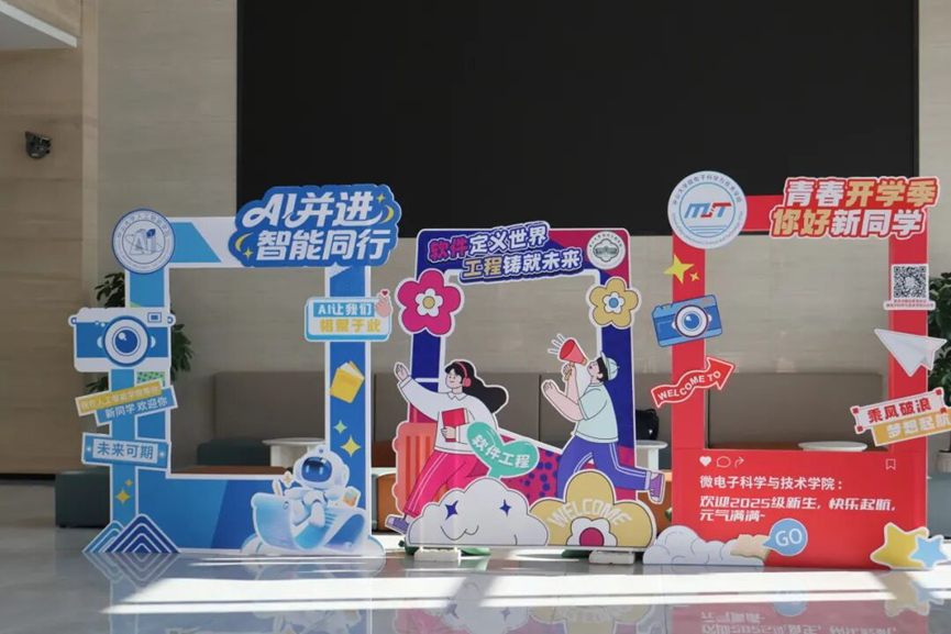 此外,学院还在一楼大堂设置了拍照打卡框,供新同学们打卡记录。