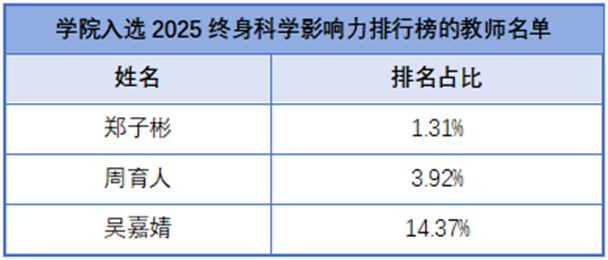 喜报丨开元官网6名老师入选全球前2%顶尖科学家榜单(2025)