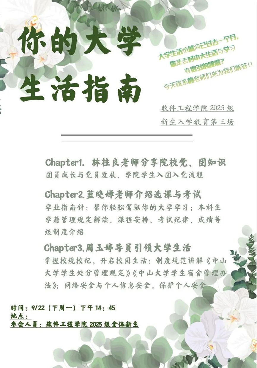 学在软工丨新生入学教育第三期活动回顾: 学业指南、生活领航暨入团入党成长发展
